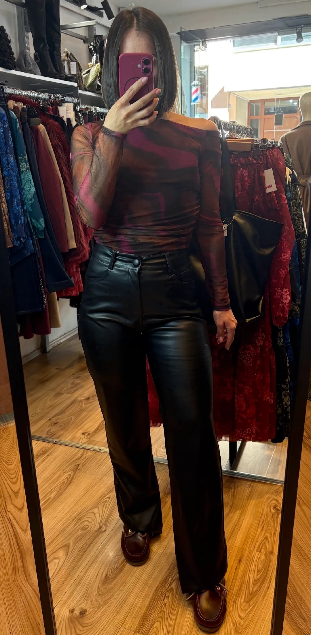 Leather straight pants